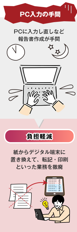 作業内容の報告を行うにあたり、キーボードで文章を入力する手間をなくし、音声により入力効率化を実現します。