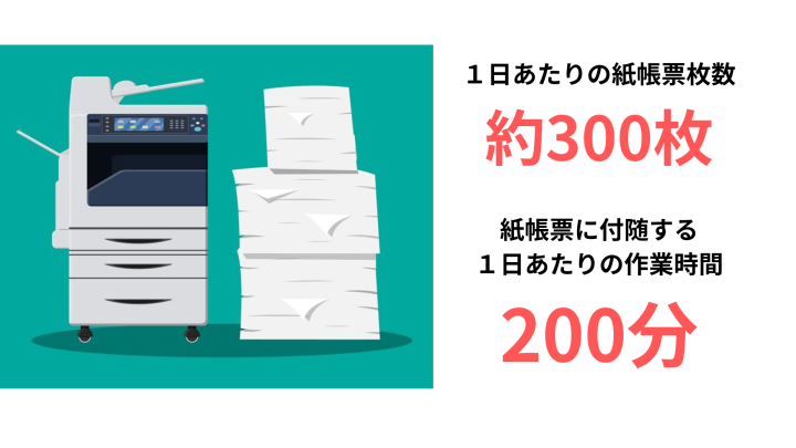 工場では身だしなみチェック、備品チェック、センターの庫内状況の日報、返品伝票の依頼書など紙の帳票が毎日300枚ほど出ており、それらの紙帳票に対して発生する印刷・回収・貼りだし・仕分け・チェックなどの作業に200分もの時間がかかっていた。また帳票がすべて手書きのため集計も人が全て手作業で行うこととなり、トレーサビリティをとることも非常に困難であった。