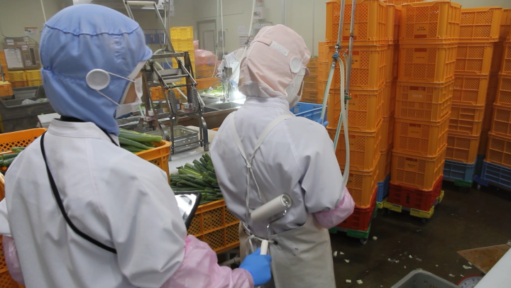 産地からデリカフーズに野菜が届くまでは「農業者の目」を持って、生産者の方とともに、 おいしく栄養が詰まった野菜作りに取り組んでいるほか、届いた野菜は「科学者の目」を持って、保存、加工、包装、配送に至るまで、鮮度とスピードにこだわりを持ち提供を行っている。
