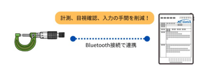 製品の寸法をマイクロメーターで測定しているが、それらのデータをBluetooth機器を使って、直接XC-Gateの帳票へ自動入力することが可能になった。計測、目視確認、入力の手間を削減することができ、作業効率の向上だけでなく、誤記入の防止や業務効率化にも繋がった。