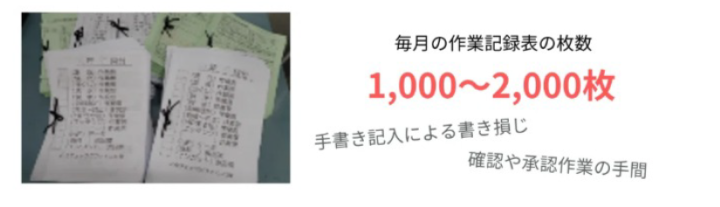 毎月1,000~2,000枚の作業記録表の業務を効率化