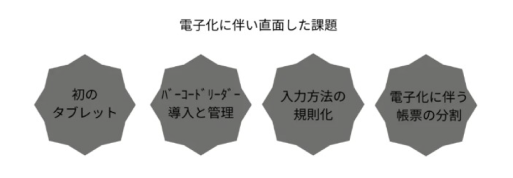 紙帳票での運用では、手書きによる誤記入や記入漏れが発生することもあった。それらPCへ転記する際に、書き手のクセなどで非常に読みにくいということもあり、正確な記録の作成には、かなりの時間がかかっていた。