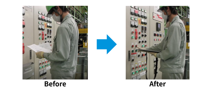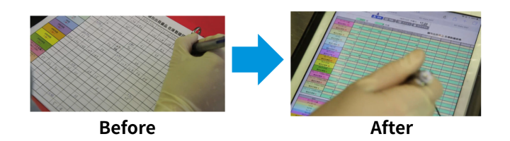 手書きであることから、誤記や記入忘れといったヒューマンエラーだけでなく、各作業者が書く字体も異なるため文字が確認しづらいことがあり、記入者に対して都度確認を行いながらの記録に時間が掛かるなど、複数の課題が生じていた。