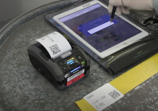 ラベルプリンタは識別管理ツールとして利用しており品種やロット番号、重量などの情報をデータ化してQRコードと文字をラベルに印字している。そのデータ化されたラベルを直接製品に貼りつける事で、製品と情報の紐づけを行い確認できるように運用している。尚、QRコードは現場環境に合わせた耐久性のあるラベルを活用。XC-Gateで記録した情報を、現場に置いてあるラベルプリンタ「Petit lapin(プチラパン)PW208NX」からQRコードに変換された状態で印字している。