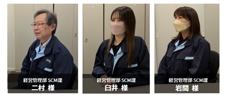 同社は、「XC-Gate.ENT」を2021年に導入し、現在は各工程での生産日報を電子化、ラベルプリンターとのリアルタイムでの連携、基幹システムからのデータ参照、入力データをBIツールで集計・全社で閲覧できるようにするなど、多岐にわたる連携で全工程のデジタル化を実現している。今回は、現場のデジタル化の推進を担当された経営管理部 SCM課の二村様、臼井様、岩間様に話を伺った。