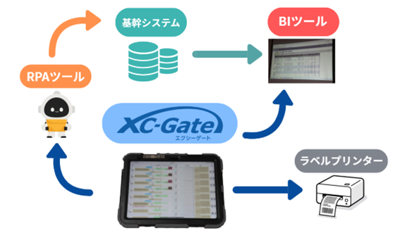 同社では「XC-Gate」を単なる帳票電子化ツールとしてではなく、現場データを収集・活用する基盤として位置付けている。入力されたデータは各業務へと連携され、ラベル自動発行、在庫管理・棚卸での利用、試験成績書の作成、さらにはBIツールへのデータ分析連携まで、多岐にわたる業務改善へと発展している。