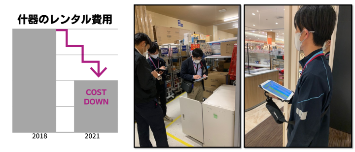 (什器のレンタル費用が3年で半分に)