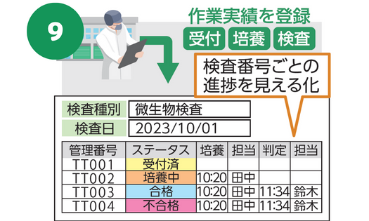 検査日報の電子化により、検査番号ごとの作業状況見える化と実績の自動集計を実現