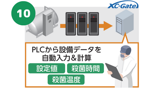 設備情報をPLC経由で取得して帳票に自動入力、殺菌時間を入力内容から自動で計算・判定
