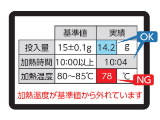 原材料のラベル上に記載された賞味期限を OCRリーダーで読み取り、自動照合