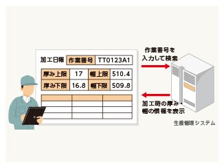 QRコードから各部品情報を読み取り、帳票へ検査基準を即時反映